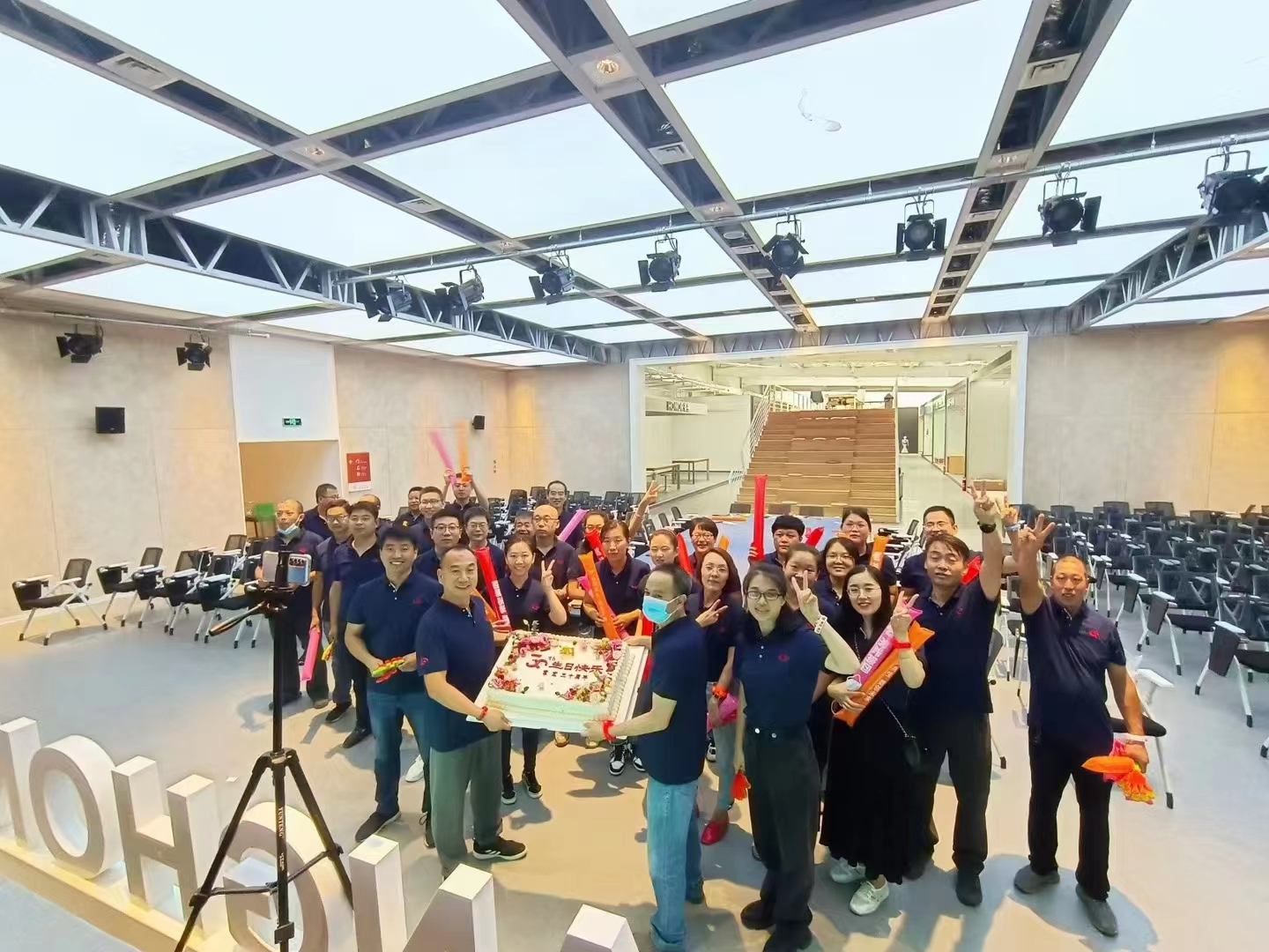 因?yàn)橥蝗缙鋪淼囊咔?,我們原本在籌備過程中的線下活動(dòng)被緊急叫停,沒有靜默的常宏正定產(chǎn)業(yè)園還在堅(jiān)持生產(chǎn),成為了我們唯一的線下活動(dòng)會(huì)場。能夠相聚的常宏人在產(chǎn)業(yè)園展示中心共同參加線上慶典活動(dòng),伴隨著美味的蛋糕和生日歌為常宏送上最美好的生日祝福。