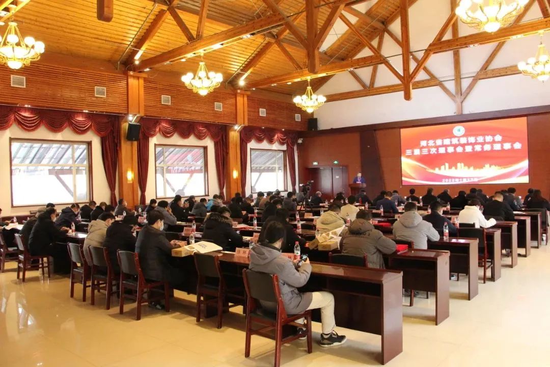 2023年1月12日,河北省建筑裝飾業(yè)協(xié)會三屆三次理事會暨常務理事會在河北省建筑科技研發(fā)中心會議室圓滿召開。本次會議采取線上、線下相結合的形式,河北省建筑裝飾業(yè)協(xié)會創(chuàng)會會長杜慶雨,協(xié)會領導及常務理事、理事單位代表等80余人現場參會,其他理事線上參會。